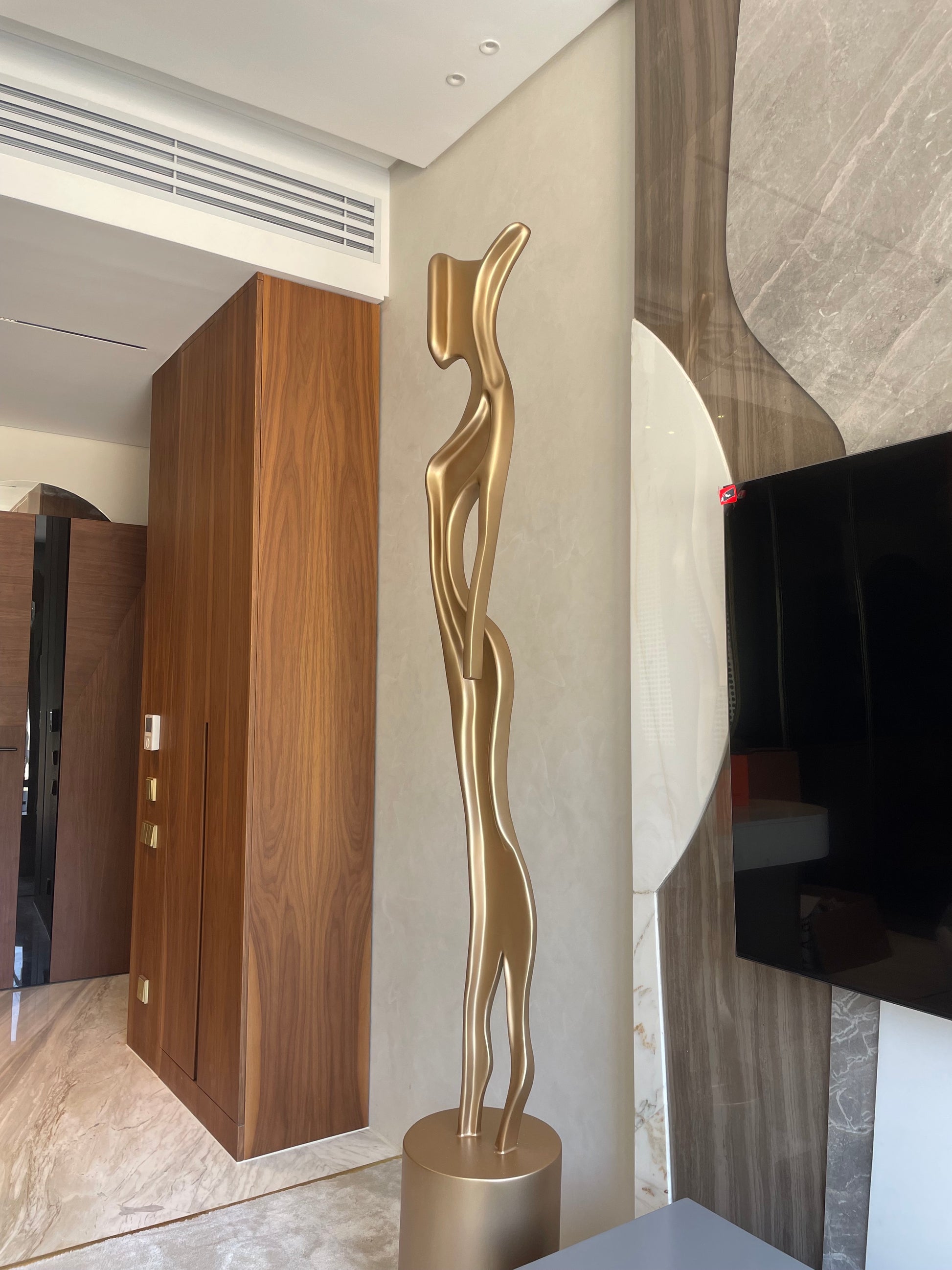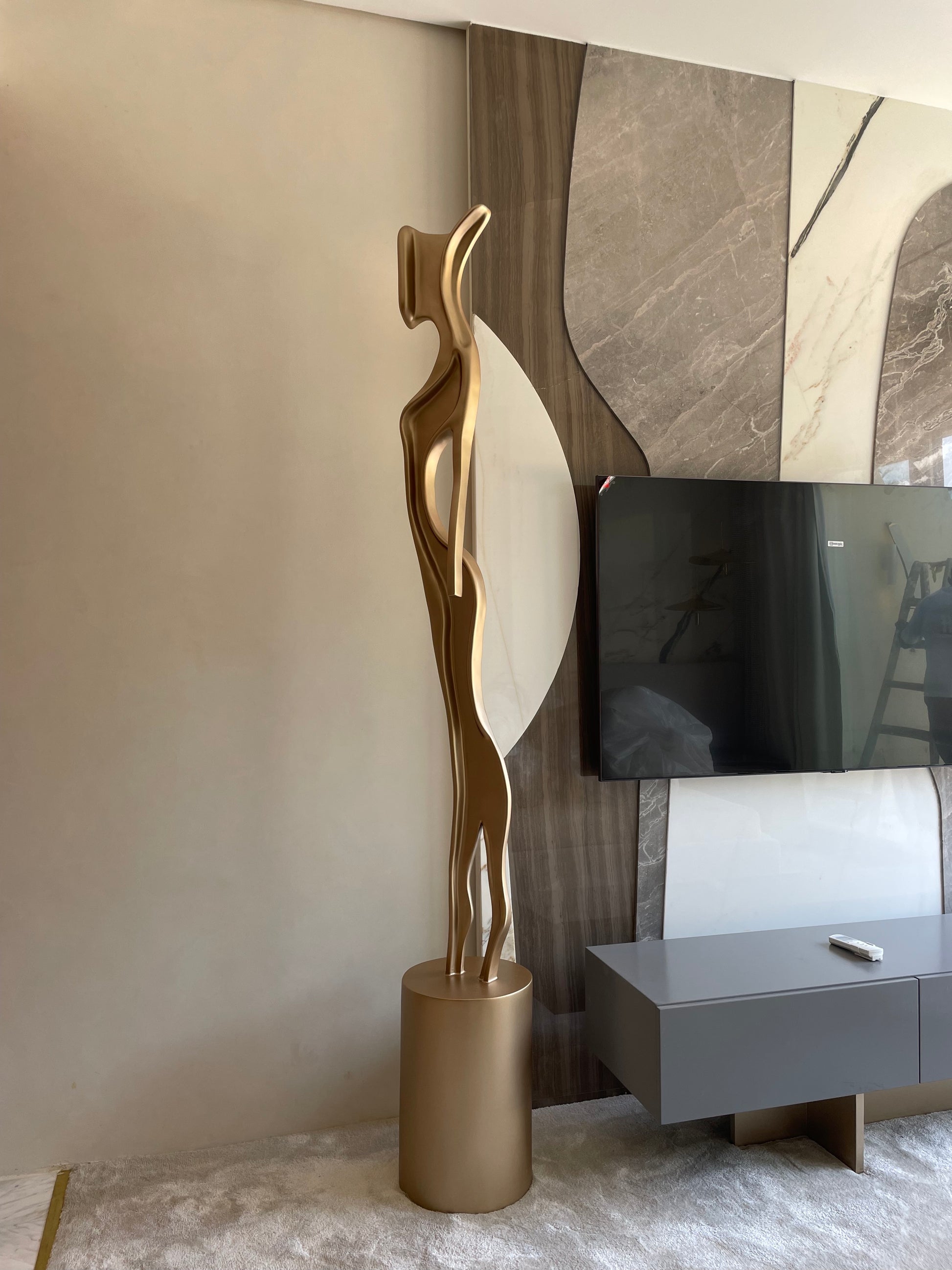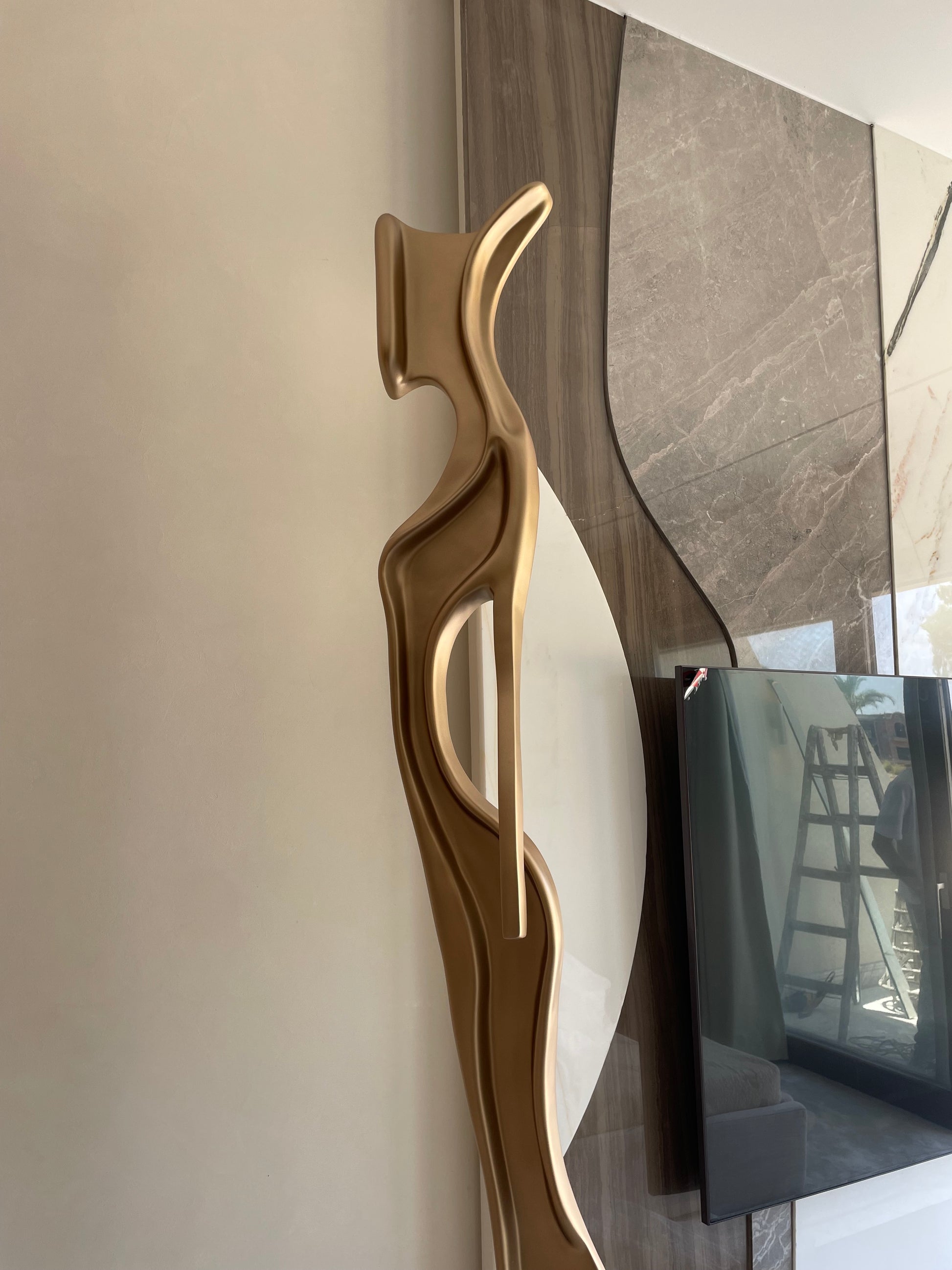 “Night Bloom” is a captivating exploration of fluid form and hidden light. Its tall, slender silhouette is carved with delicate curves and negative space, suggesting a flower unfurling in the stillness of evening. The deep black finish creates a striking contrast against any backdrop, highlighting the sculpture’s graceful contours. Both dramatic and serene, “Night Bloom” draws the eye with its sense of unfolding potential, inviting observers to marvel at the artful interplay of shadow and shape.